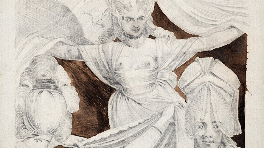 Fu soprattutto negli anni successivi al matrimonio con Sophia Rawlins, allora ventenne, che l’interesse di Fussli per la rappresentazione femminile si manifestò nei suoi disegni. Füssli aveva conosciuto la sua futura moglie assumendola come modella, e molto tempo dopo il matrimonio lei continuò a posare per lui. I lineamenti di Rawlins si ritrovano in molti dei disegni di Füssli, mentre non c’ĆØ dubbio che solo un piccolo numero di schizzi fosse inteso come ritratto. Invece di concentrarsi sul suo viso, l’artista ha prestato molta più attenzione alla sua pettinatura costantemente reinventata e ha accuratamente rappresentato le disposizioni estremamente intricate di ciocche, riccioli e nastri strettamente allineati, che superavano di gran lunga gli standard di finitura dei parrucchieri del XVIII secolo.